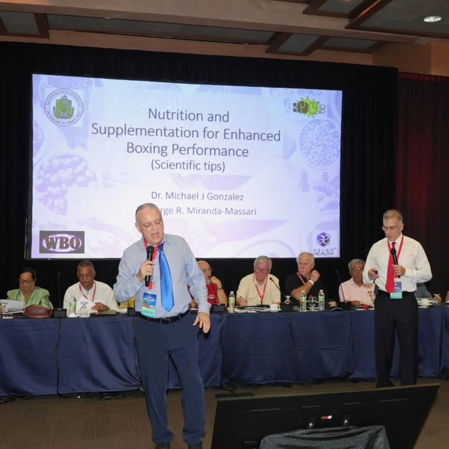 Dr. Michael González and Dr. Jorge Miranda Massari presented “Metabolic Correction for Physiological Optimization in Boxing”.