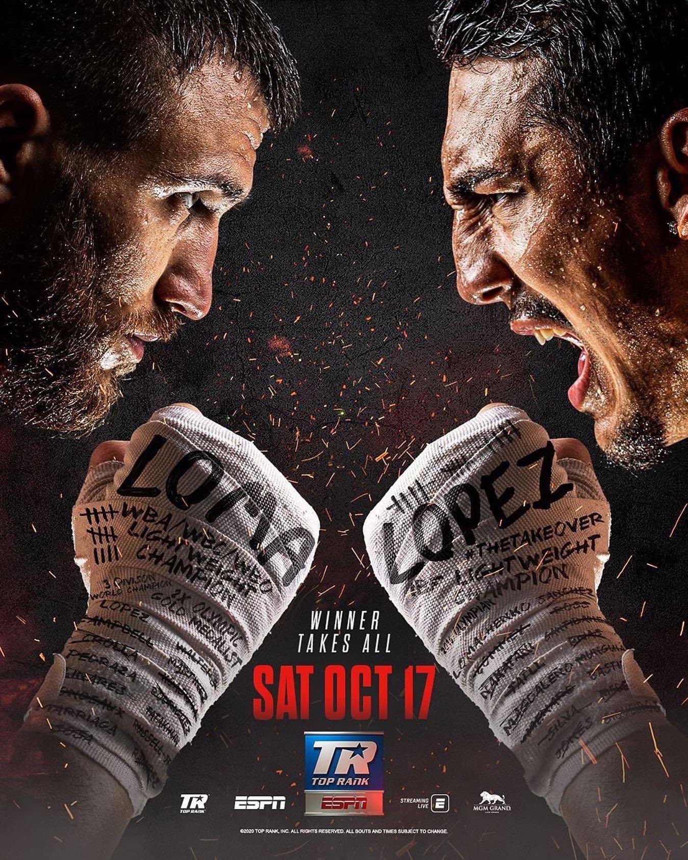 Top Rank has officially released the artwork for the Lomachenko-Lopez Unified WBO Lightweight Championship Clash
