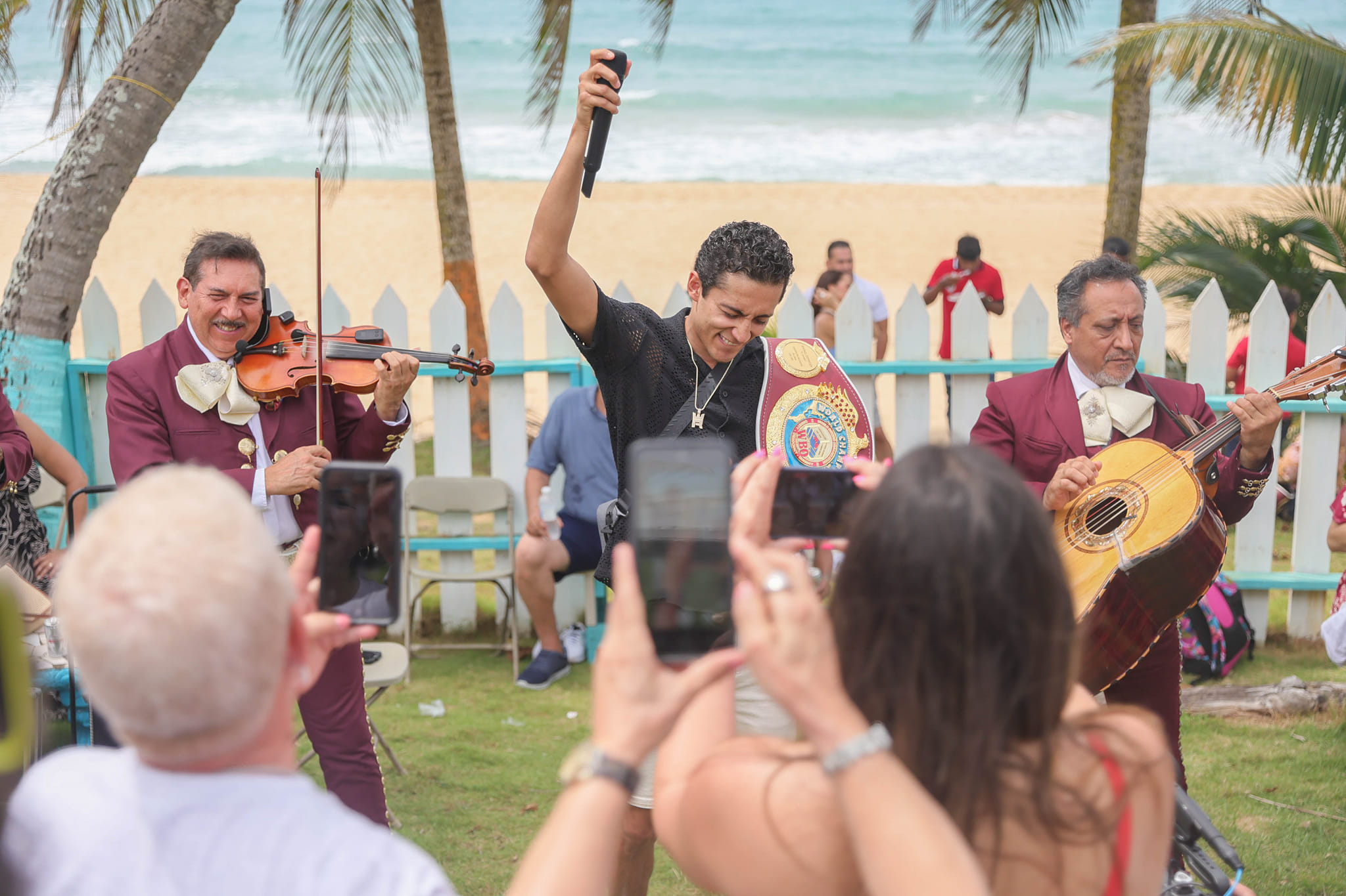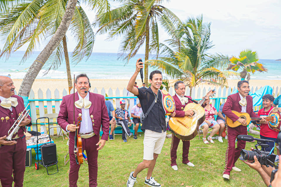 During the crowded event, Espinoza delighted the public with his singing abilities, alongside Mariachis.